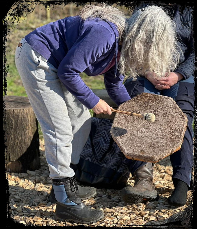 Op een ochtend pakte ik mijn spullen om te gaan helpen tuinieren op een prachtige plek in het bos. Ik voelde ineens dat ik ook mijn drum mee mocht nemen. Vond het niet heel logisch, was niet echt tuindersgereedschap. Maar, ok, ik luisterde.